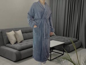 Чоловічий халат із махри велсофт представлений у сірому кольорі.