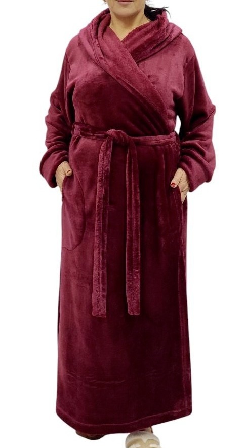 Однотонний махровий халат на запах великих розмірів.Теплий однотонний халат з капюшоном,двома бічними карманами та поясом посшитий в великих розмірах.
