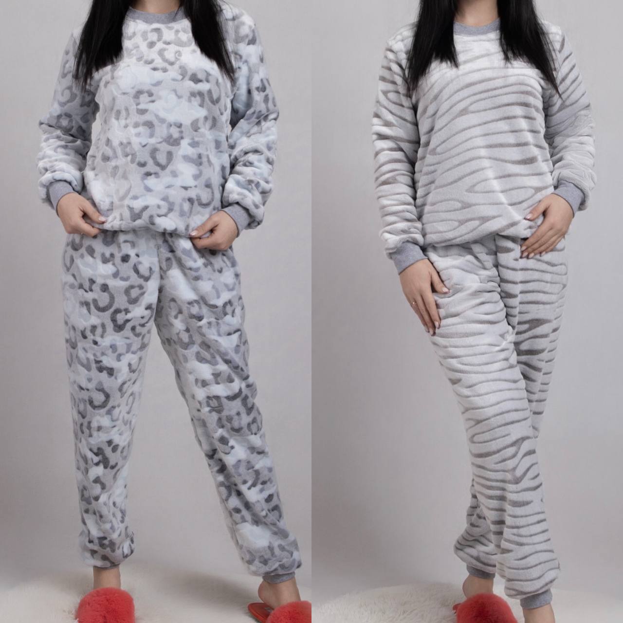 Жіноча махрова піжама, полотно махра, штани з манжетами, на кофті рукава з манжетом.