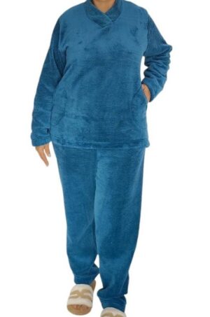 Жіноча піжама махрова з пухнастої махри. Вона тепла та легка, приємна до тіла повітропроникна. Піжама вона може бути як домашній костюм, на кофті дві кишені.