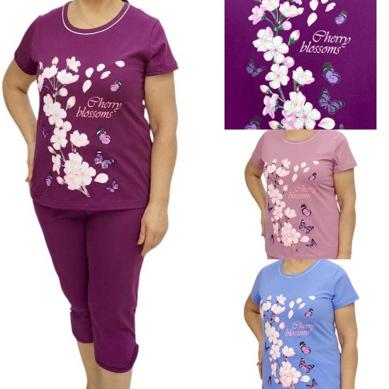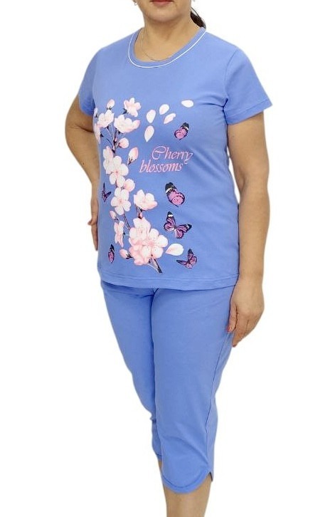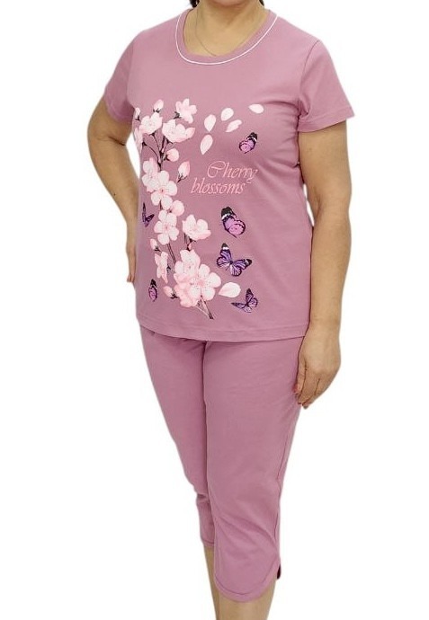Піжама жіноча футболка та бриджі. Піжама пошита з бавовняного трикотажного полотна.