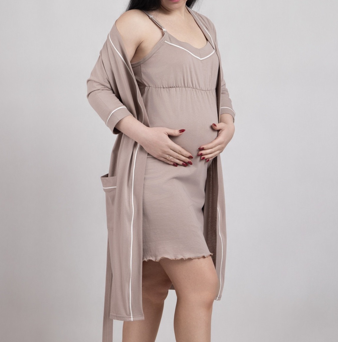 Набір прикрашений кантом. Набір чудово підійде для вагітних і мам, що годують.