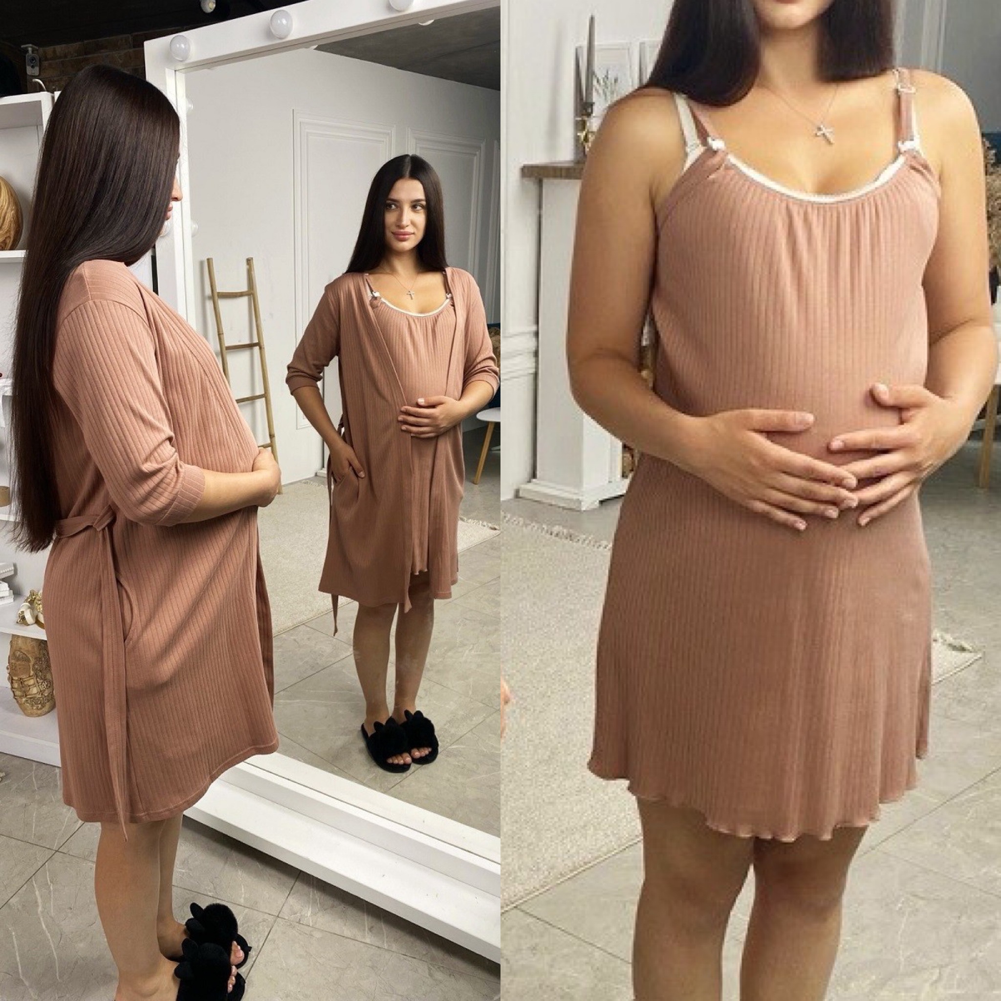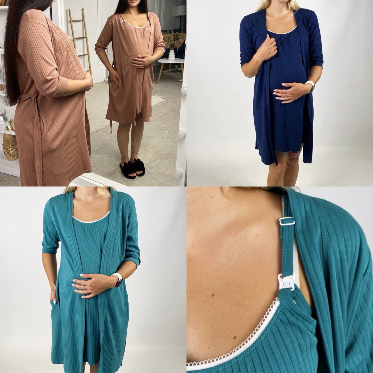 Люкс Комплект для вагітних інтерлок халат і сорочка на кліпсі .