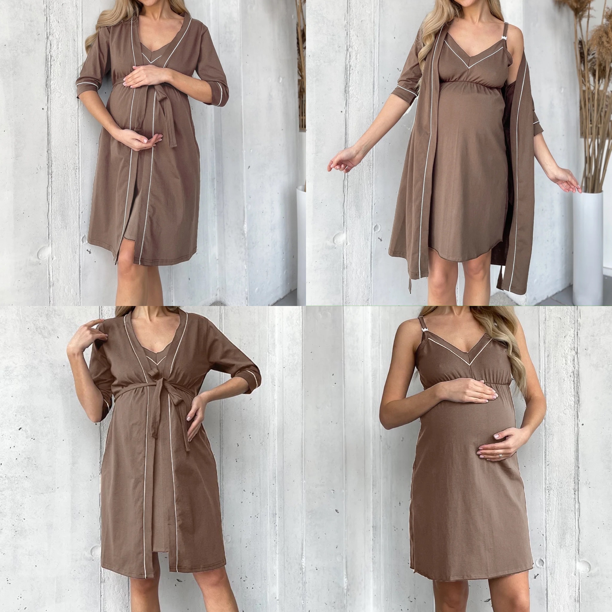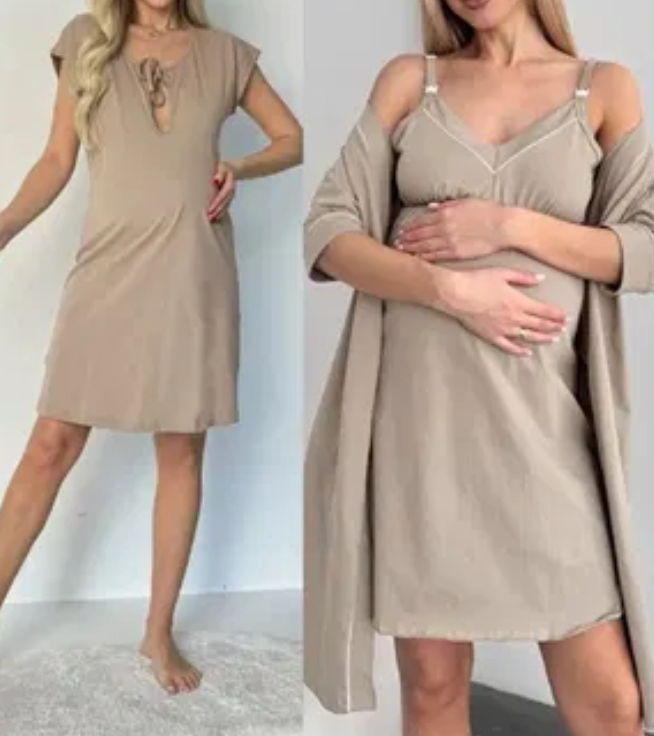 Комплект сорочка і халат з кантом для вагітних і мам і годуючих мам.