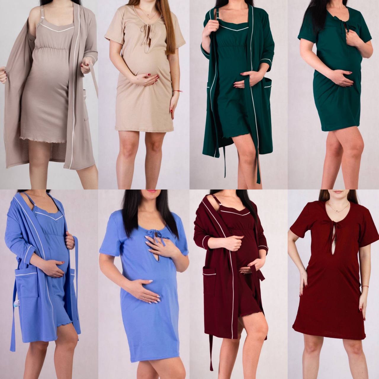 Туніка бавовняна на пологи для вагітних. Нічна середня довжина з зав’язкою, полотно кулір (100% бавовна).