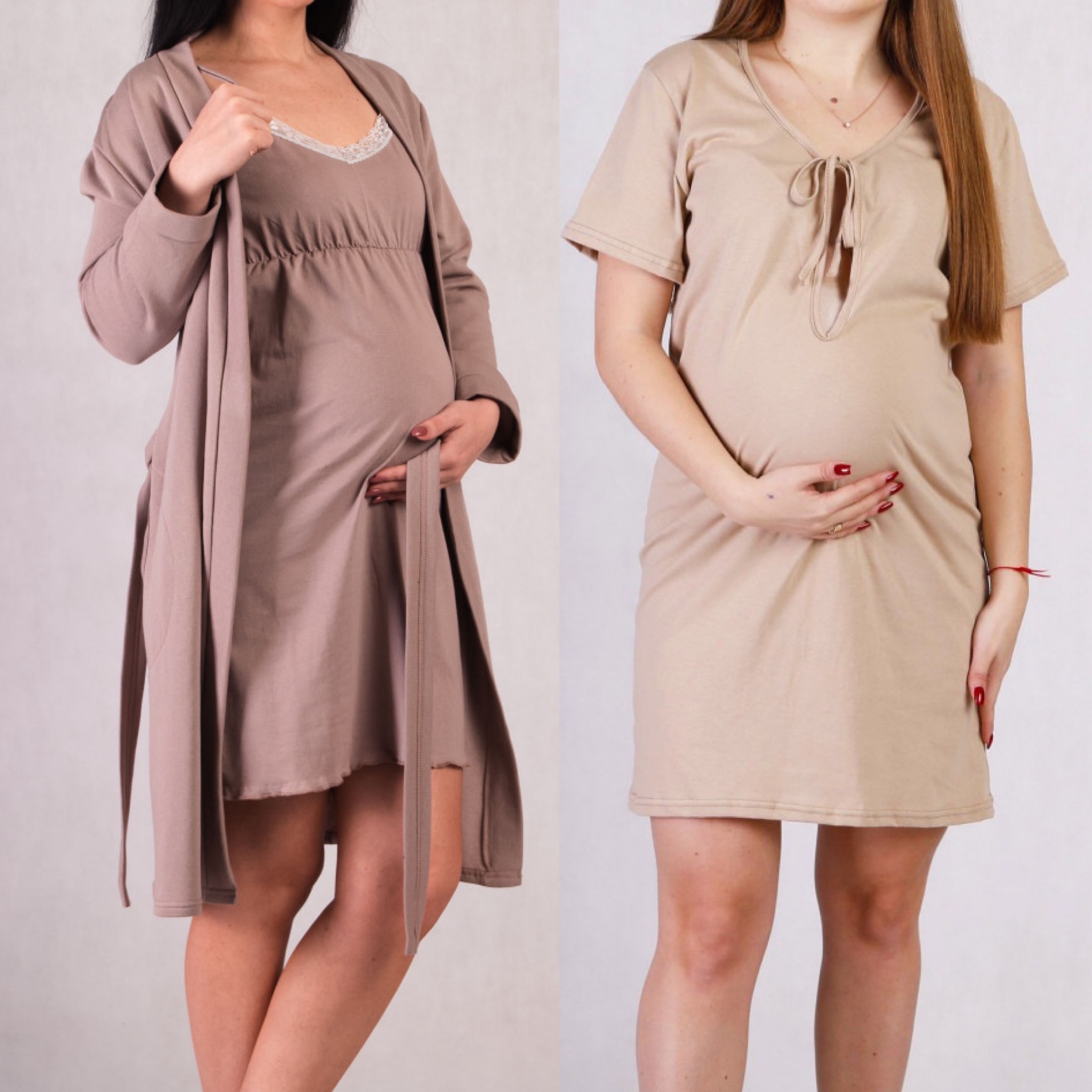 Туніка бавовняна на пологи для вагітних. Нічна середня довжина з зав’язкою, полотно кулір (100% бавовна).