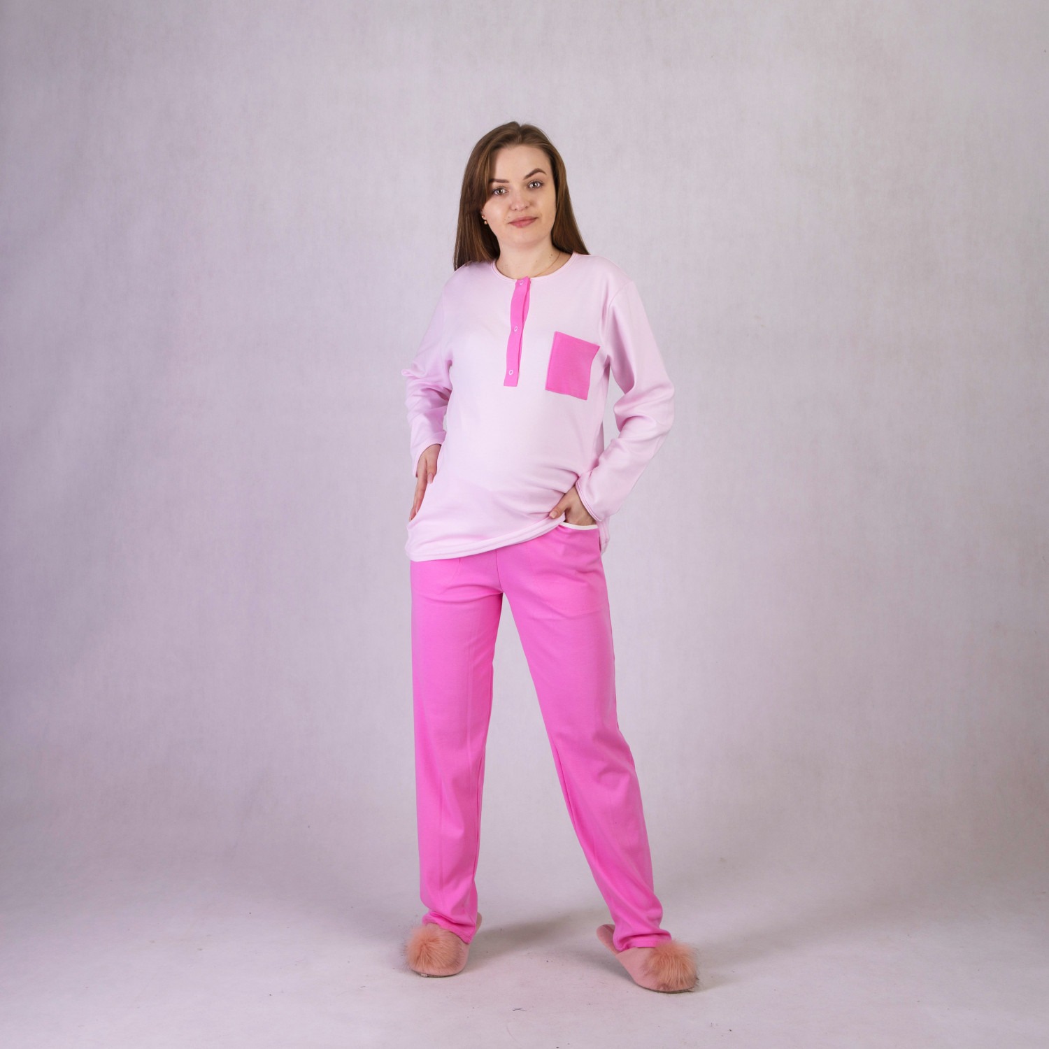 Жіноча піжама, комплект складається з кофти з кишенею на планці + штани з кишенями, штани прямого крою.