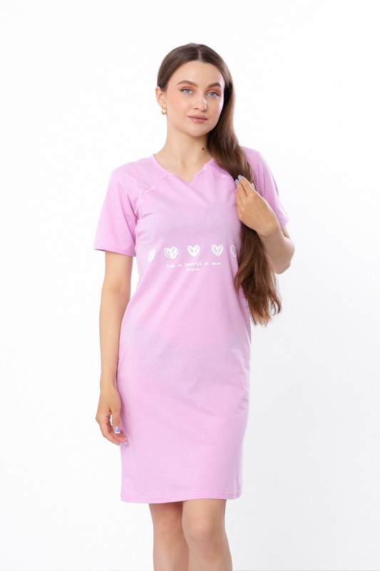 Практична, зручна нічна сорочка для годуючих мам. Виконана з легкого, повітряного полотна кулір. Матеріал добре пропускає повітря, і не сковувує рухів. Сорочка відмінно підійде для дому і для сну. Прикрашена дуже ніжним, милим накатом. Дуже приємна до тіла, добре носиться, прати при температурі 30 градусів. Кнопки розстібаються на дві сторони, дуже зручно для годуючих мам.