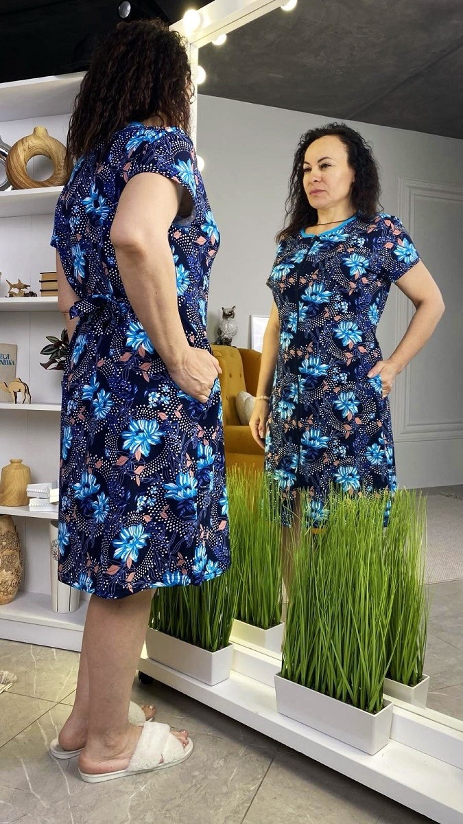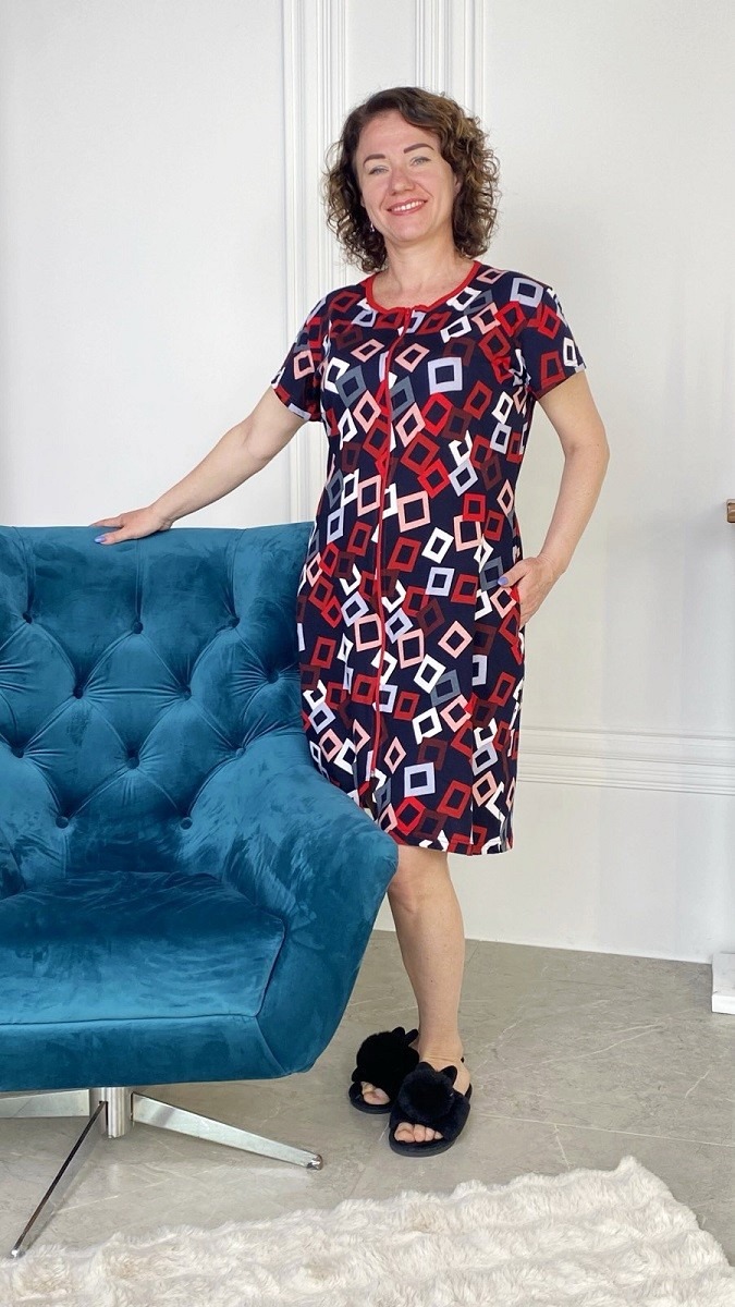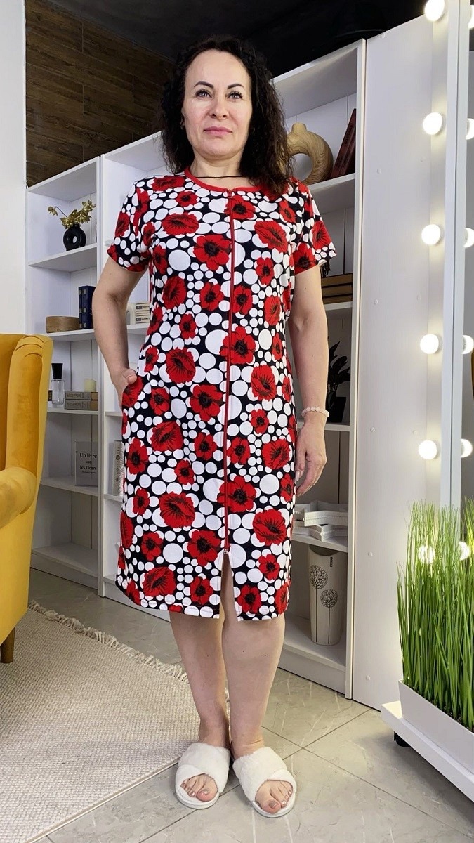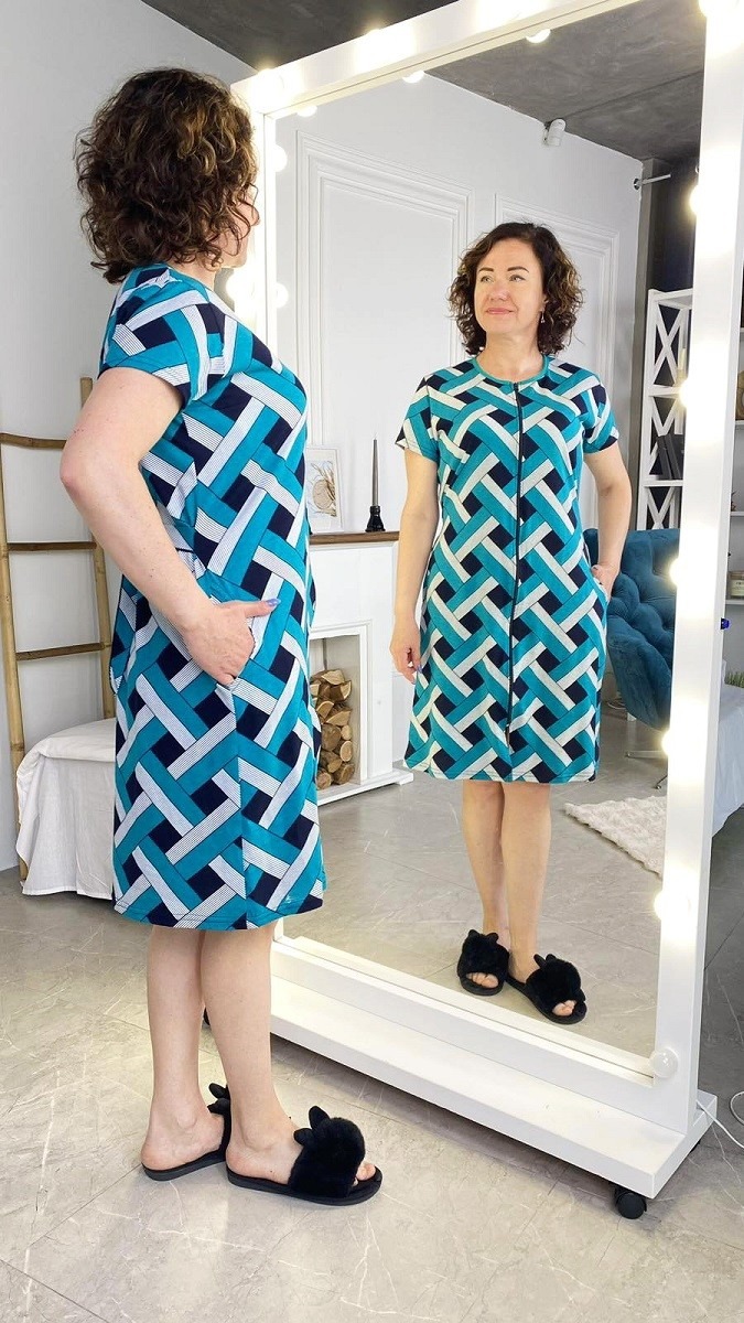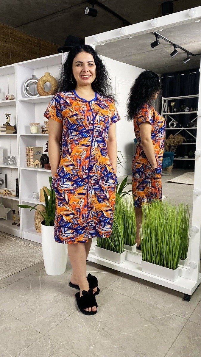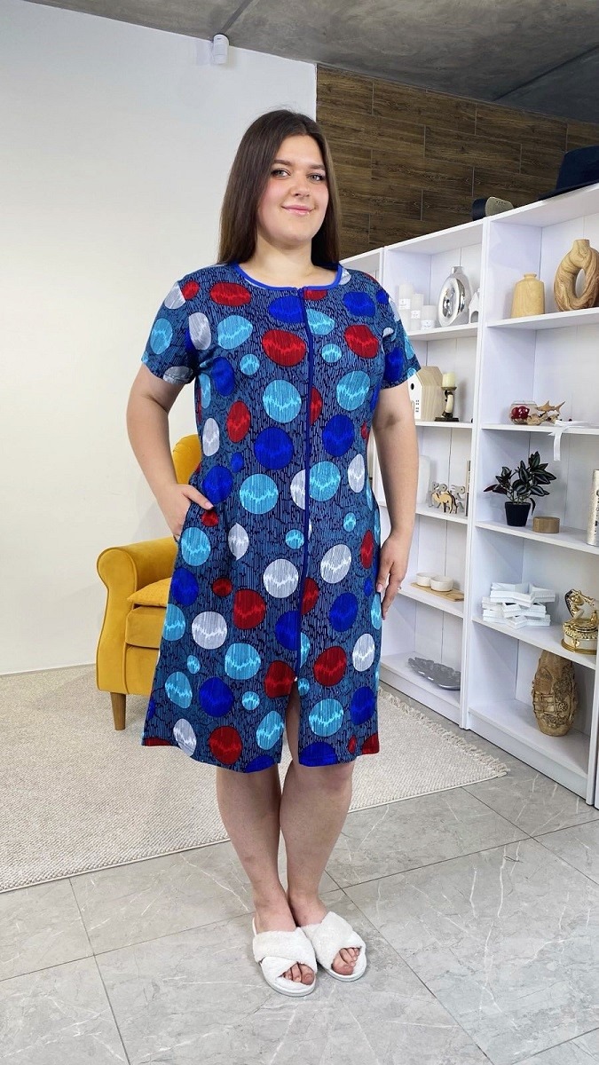 Халат жіночий реактив кулір на блискавці та паском, батал.