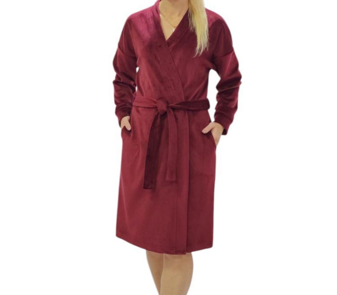 Халат з якісного плюшевого велюру. Халат із заходом із двома кишенями та поясом. Розміри: 44 по 58.